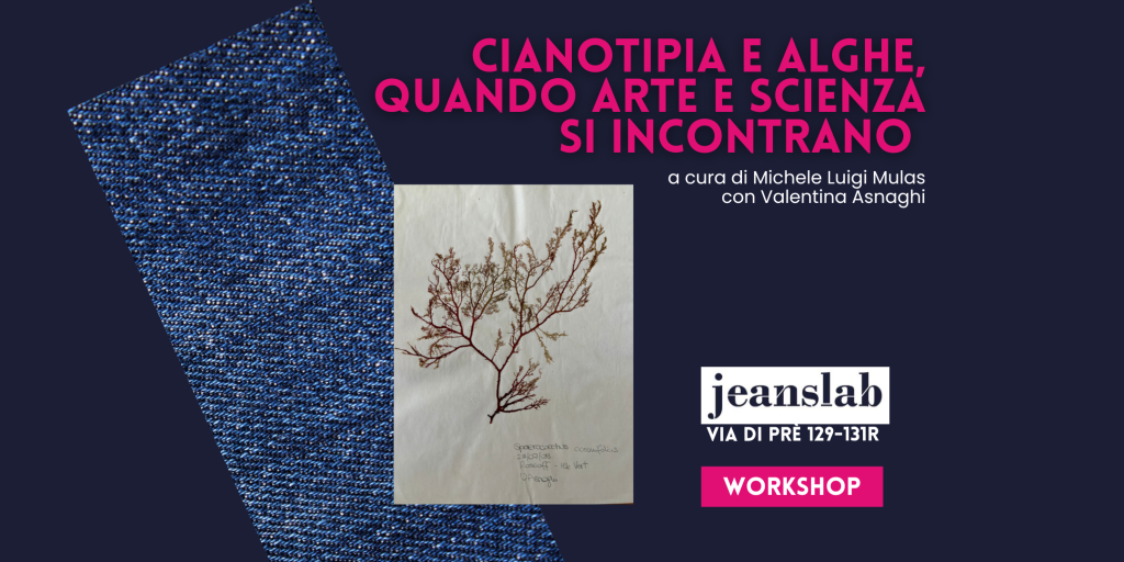 With her workshop entitled CIANOTIPIA E ALGHE, QUANDO ARTE E SCIENZA SI INCONGRANO (Cyanotype and Algae, WHEN ART AND SCIENCE MEET), researcher Valentina Asnaghi will involve the students of the Accademia Ligustica in selecting and using algae in the spectacular artistic technique of cyanotyping on white denim canvas.